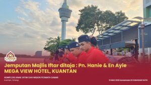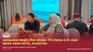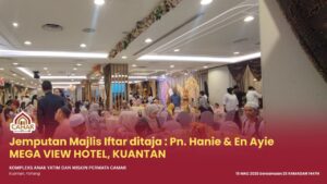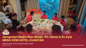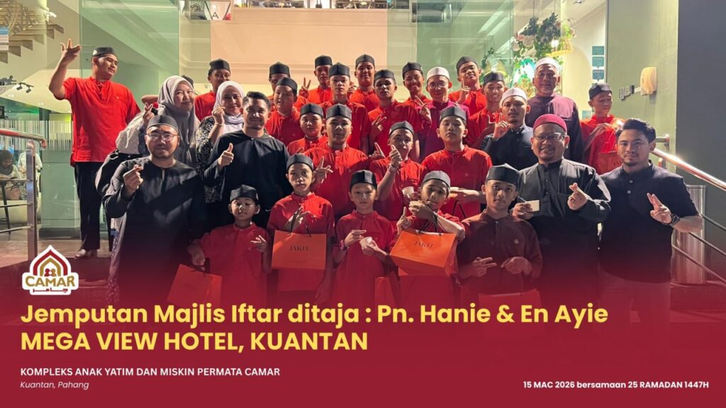 KUANTAN, 15 Mac 2026 – Kompleks Anak Yatim dan Miskin Permata Camar, Kuantan telah menerima jemputan Majlis Iftar Ramadan yang ditaja oleh Puan Hanie dan Encik Ayie pada hari ini bersamaan 25 Ramadan 1447H.