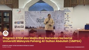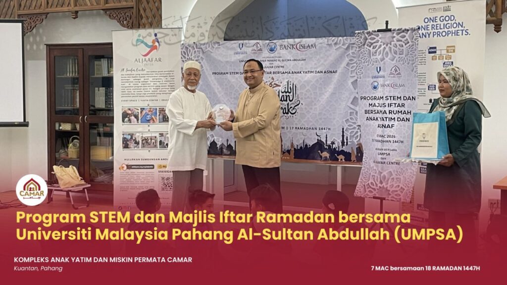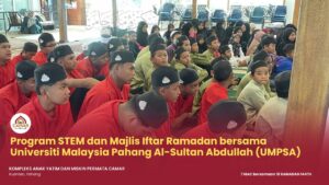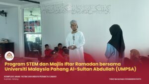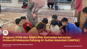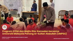KUANTAN, 7 Mac 2026 – Kompleks Anak Yatim dan Miskin Permata Camar, Kuantan telah menyertai Program STEM dan Majlis Iftar Ramadan bersama Universiti Malaysia Pahang Al-Sultan Abdullah (UMPSA) yang berlangsung pada hari ini bersamaan 18 Ramadan 1447H.